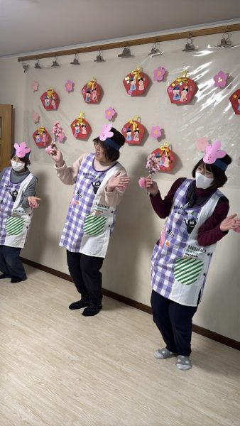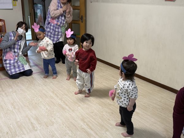 3月3日にひなまつりをしました。🎵うれしいひなまつり🎵に合わせて、先生たちや子ども達が冠やお花を身に着けてかわいらしい踊りを見せ合いました🎎💓